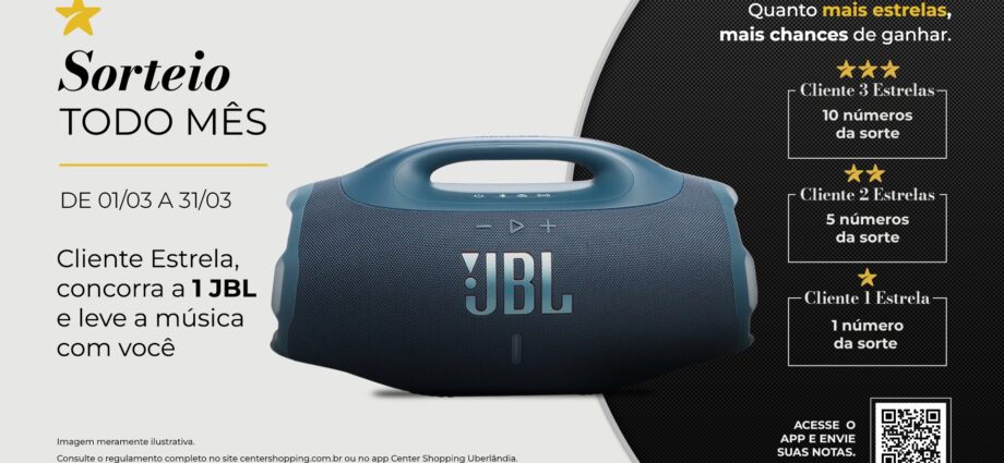 Os clientes cadastrados no Programa de Benefícios do Center Shopping Uberlândia podem transformar suas compras em números da sorte e concorrer a uma JBL Boombox. A ação acontece durante todo o mês de março.