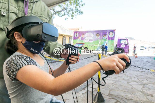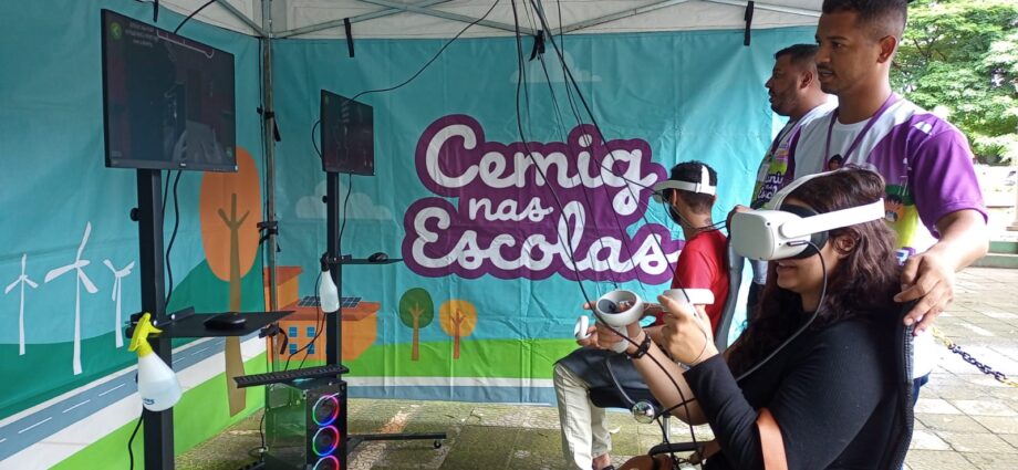 Outra atividade é o quiz interativo, com perguntas sobre energia, além de um jogo com óculos de realidade virtual. Na experiência imersiva, os estudantes devem solucionar situações práticas para se tornarem mais eficientes e contribuir para a preservação do planeta.